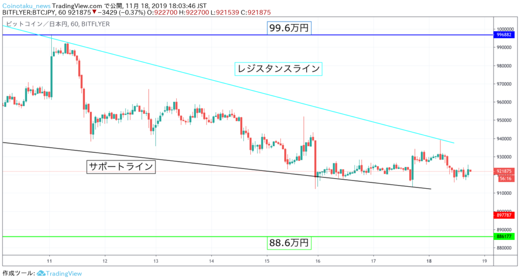 (参考 TradingViewのBTCJPYチャート 1時間足)