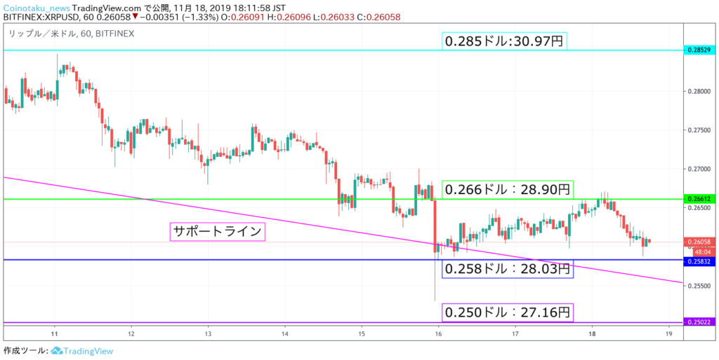 (参考 TradingViewのXRPUSDチャート 1時間足)