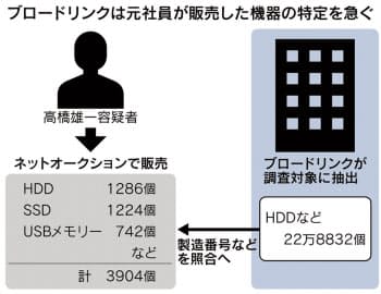 ブロードリンクによると、高橋容疑者は16年2月に入社し、データ消去を担当。社内調査の結果、同容疑者は入社後、記憶媒体やケーブル、イヤホンなど計7844個をネットオークションに出品し、落札されていた。