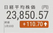 10日の東京株式市場で日経平均株価は続伸し、前日比110円70銭(0.47%)高の2万3850円57銭で終えた。中東情勢に対する警戒感の後退で前日の米ダウ工業株30種平均が最高値を更新したのを受け、運用リスク