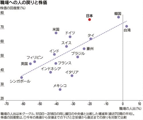 データが語る「新常態」 職場への人出と株価は比例 - 日本経済新聞