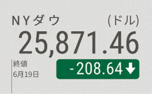 【NQNニューヨーク=戸部実華】19日の米株式市場でダウ工業株30種平均は3日続落した。前日比208ドル64セント(0.8%)安の2万5871ドル46セントで終えた。米中関係の改善期待から朝方は買いが先行した。ただ、米南部や西部を中心に新型コロナウイルスの感染が再拡大し、米経済の正常化が遅れるとの懸念が次第に強まった。ダウ平均は午後に下げに転じた。