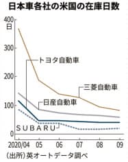 4~6月期に前年同期比49%減の9万台にとどまった米国での新車販売台数は、7~9月期は同8%減の17万台にV字回復した。英調査会社オートデータによると、4月に通常時の84日分までふくらんだ在庫をみても、9月はわずか18日分。業界平均の49日分を大きく下回る。
